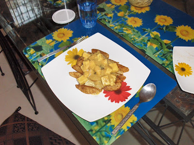1) Verser le paneer butter massala sur les frites, tout simplement...